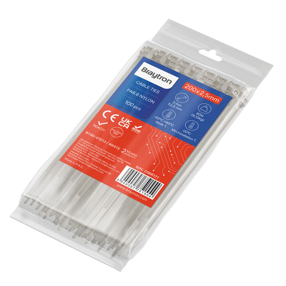 BRY-2,5x200mm-100pcs/bag-PA66-WHT-CABLE TIES