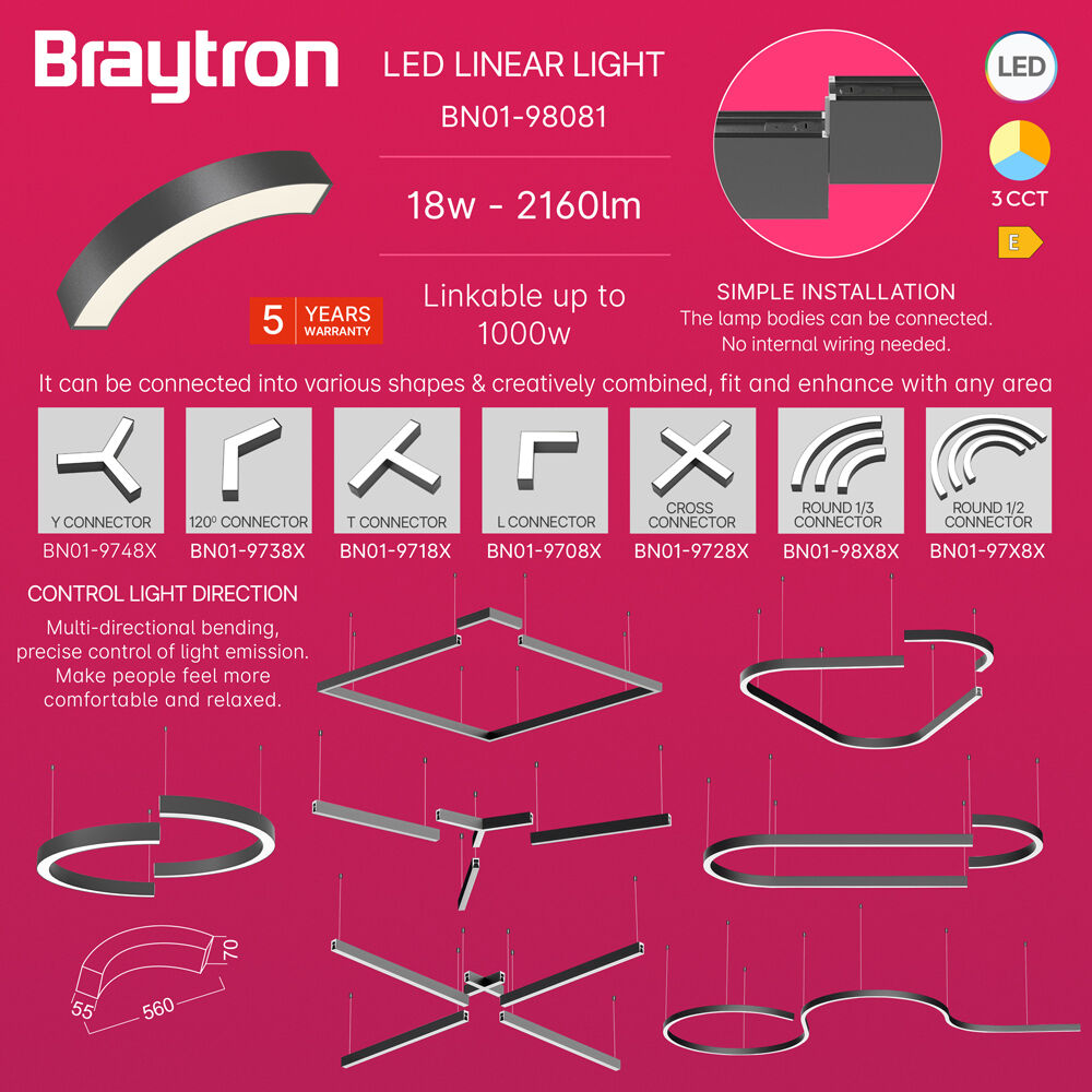 BRY-ALINE 55-1/4-18W-D560-3IN1-BLC-IP20-LINEAR LIGHT - 5