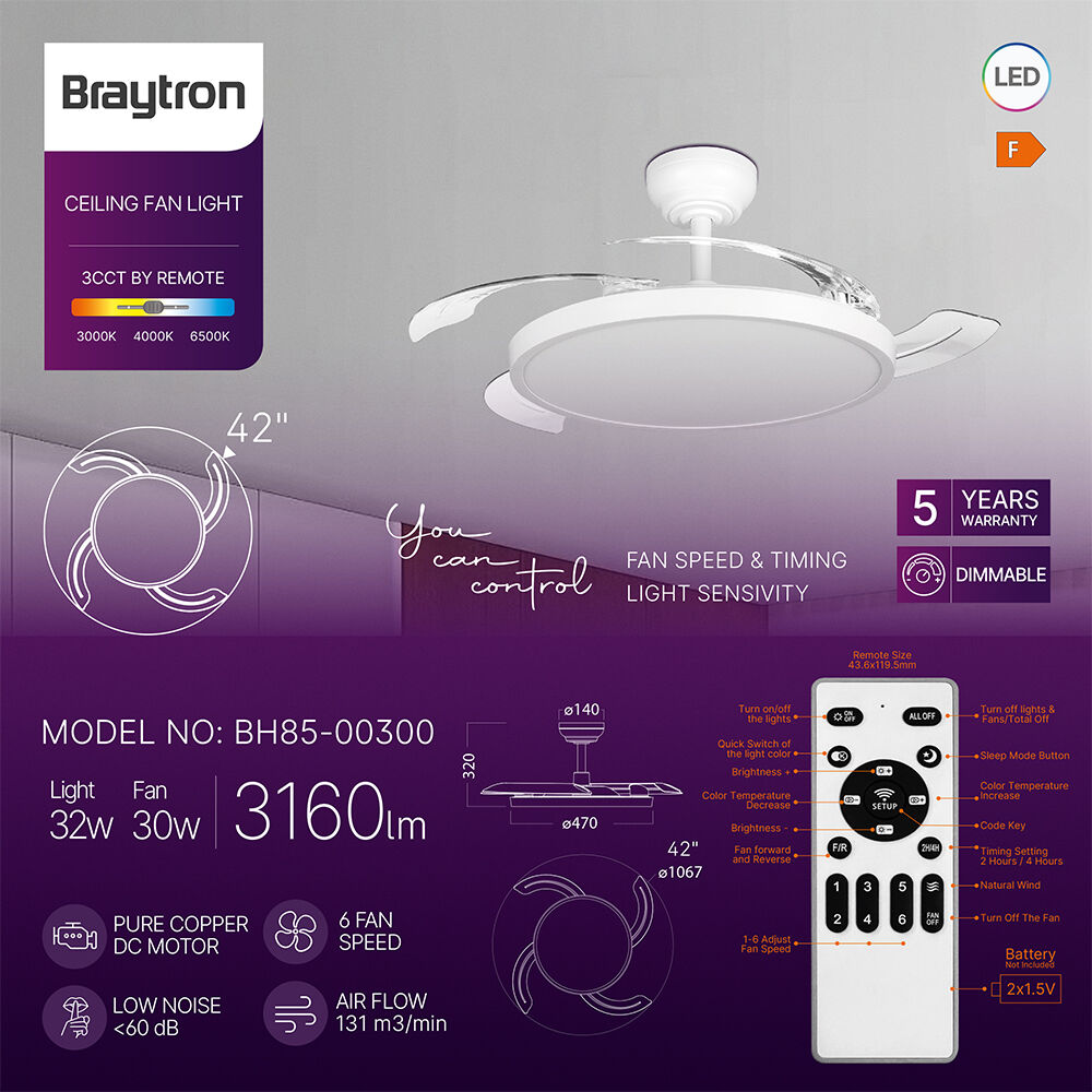 BRY-FANCY-42"-32+30W-3IN1-RMT-WHT-IP20-CEILING FAN