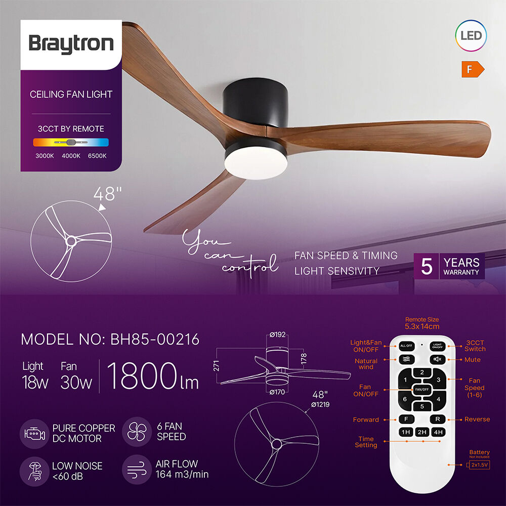 BRY-FANCY-48"-18+30W-3IN1-RMT-BLC-WDN-IP20-CEILING FAN