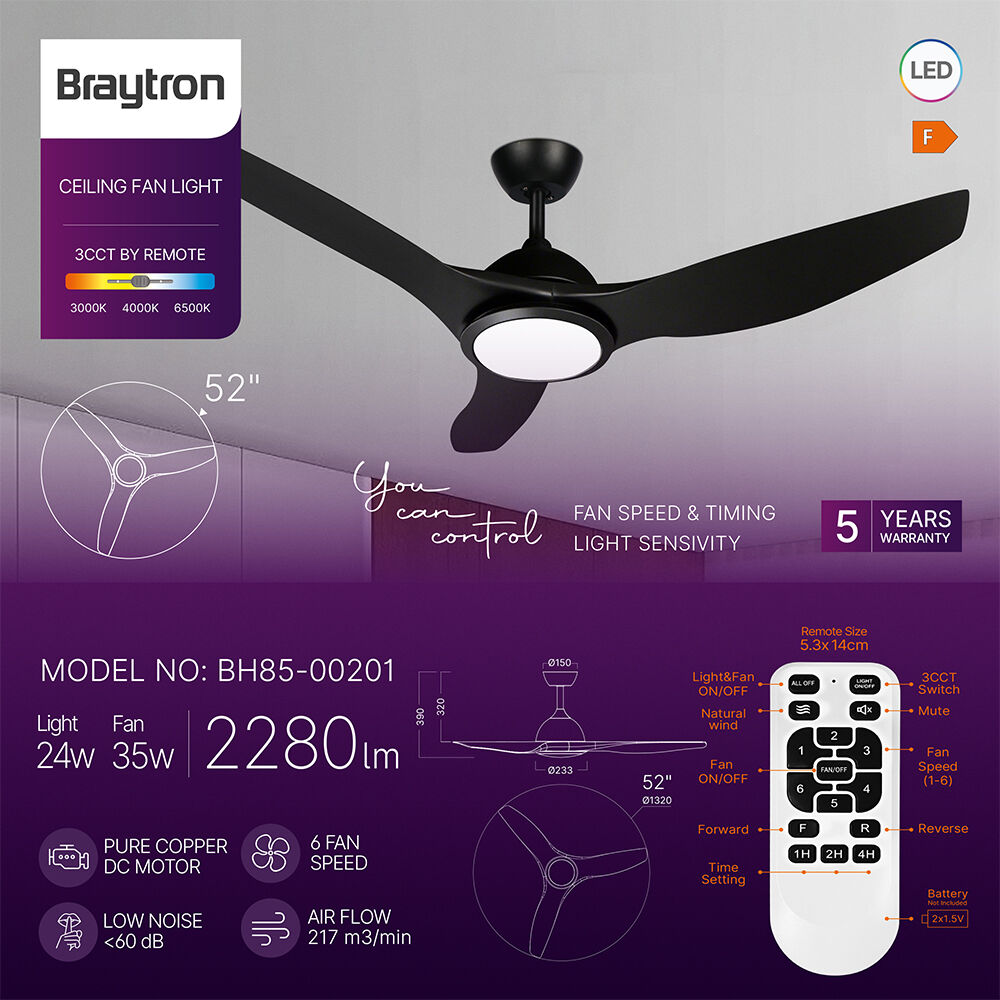 BRY-FANCY-52"-24+35W-3IN1-RMT-BLC-IP20-CEILING FAN