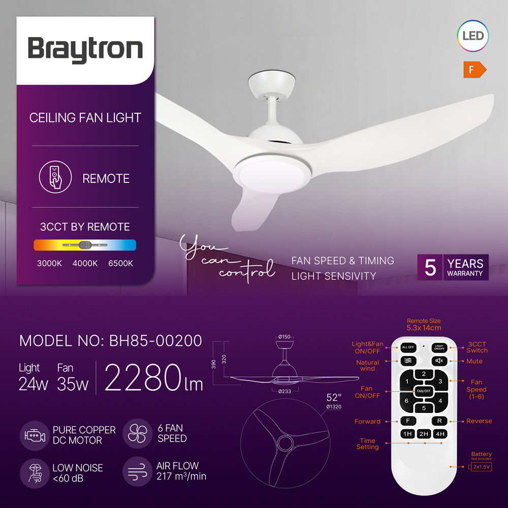 BRY-FANCY-52"-24+35W-3IN1-RMT-WHT-IP20-CEILING FAN