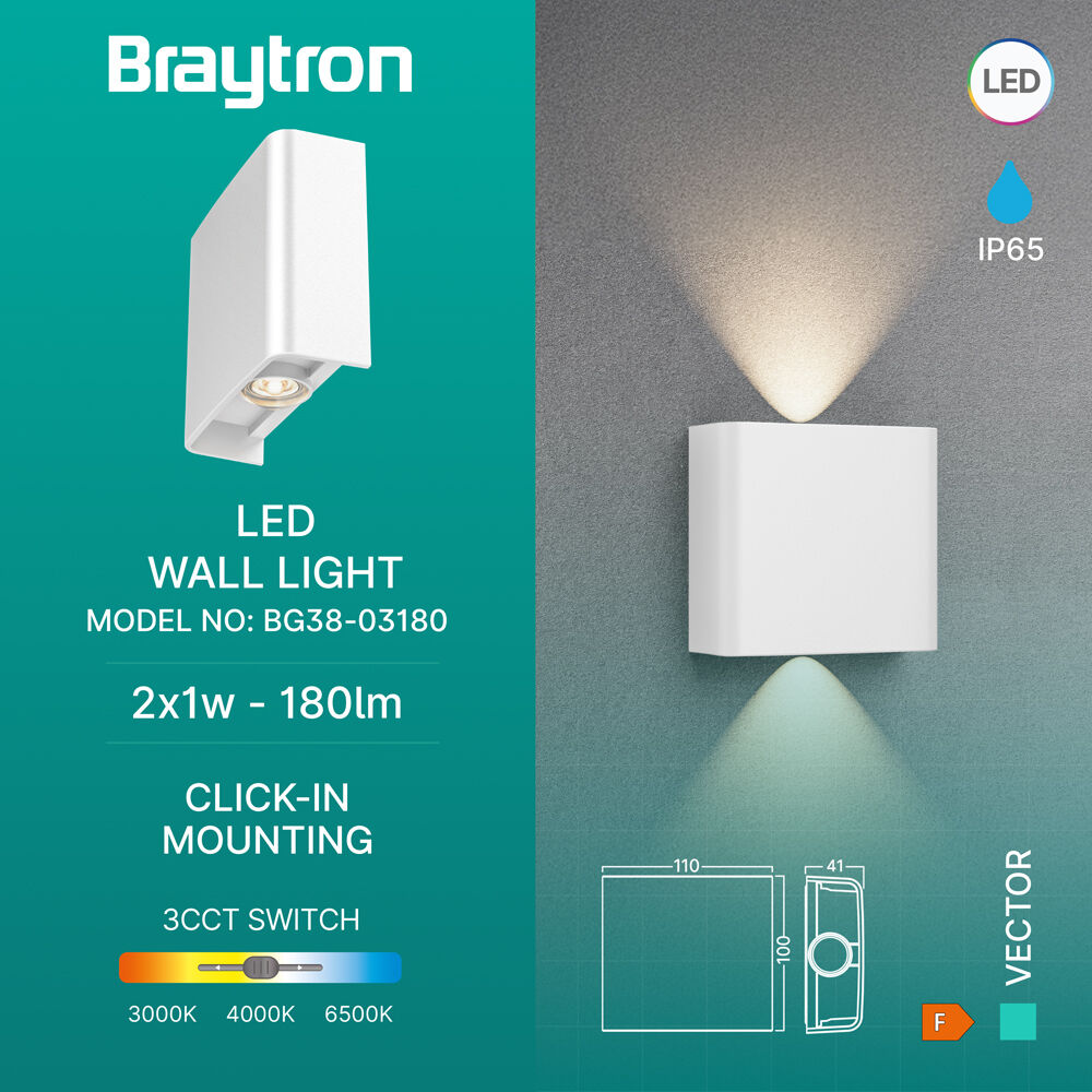 BRY-VECTOR-B-WL-WHT-2x1W-3IN1-IP65-WALL LIGHT - 1